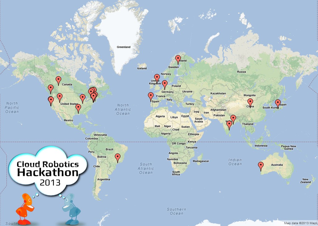 Global Cloud Robotics Hackathon 2013 is currently taking place. The hacking marathon where participants compete to create the best cloud monitoring robotic application started on April 6th and will be ending on the 14th of the same month. So far 29 teams from all around the world are hard at work as shown on the