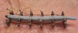 wriggling over sand. The robot is designed to mimic the behavior of a worms, which are able to maneuver through wet and slippery environments, like your gut. The next step for this robot is to put a camera and light source on it so it can capture video of its inter-bowl travels. Yummy.