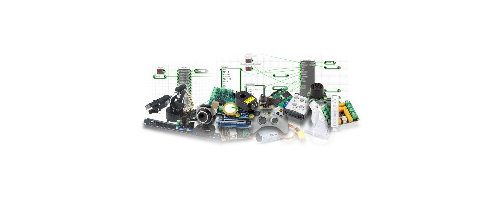 FlowStone has a huge range of supported computer interfaces, from data acquisition boards, home automation, webcams, soundcards, networking, serial ports and USB devices. There are thousands of supported devices, including parts from Lynxmotion, Phidgets, Pololu, and Robot Electronics and also parts implementing standard Bluetooth, Xbee, Modbus, TCP/IP, UDP/IP, HID, RS232, RS485, CAN Bus, SPI, I2C, X10, DMX512, and other popular protocols.