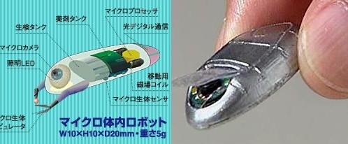yet another  miniature robot to explore around the inside of your bod y. The robot, which is less than 1" x 0.5" is inserted through an incision and is moved by controlling a magnetic field surrounding the patient.
