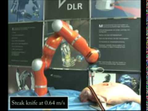 the contact between a robot handling a sharp tool (scissors, kitchen knife, saw, scalpel)