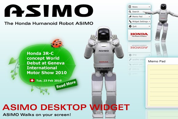 This little robotic widget is placed on your computer desktop and displays the latest news from Honda as well as provides a memo function for taking notes.
