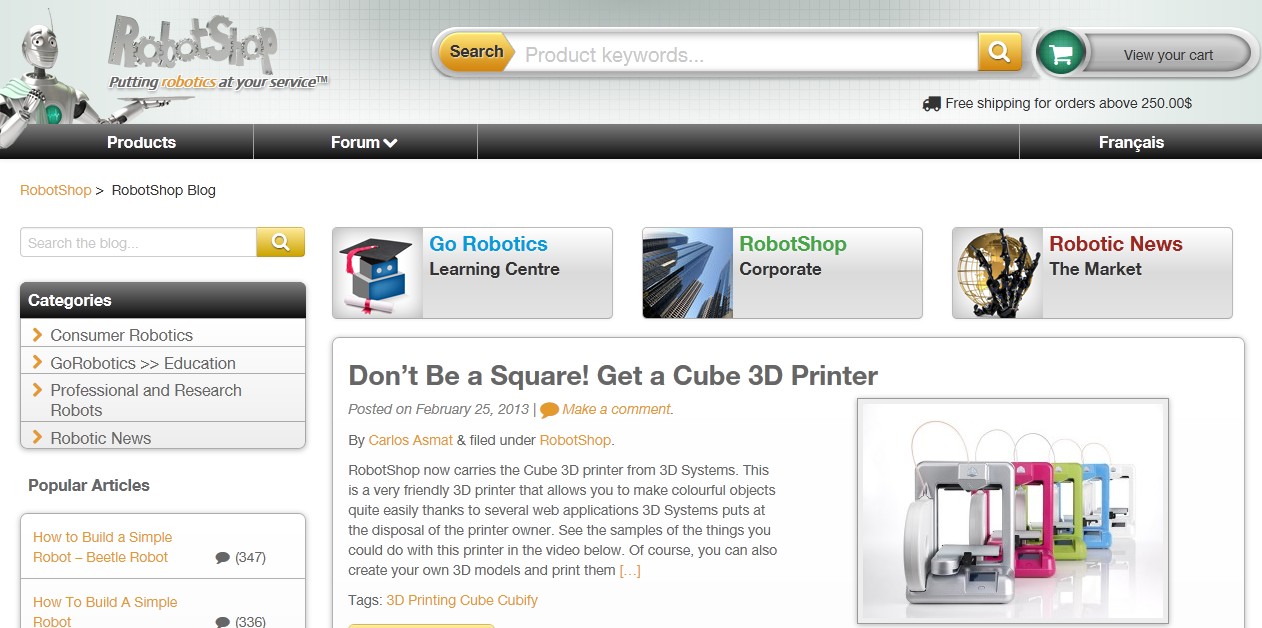 - RobotShop Product Search and cart link incorporated in the blog header to help you integrate your robotics news and robotic goods consumption.