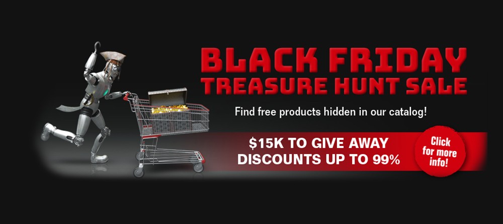 You are the first to know: RobotShop's Black Friday Treasure Hunt is back this year! More than $15 000 worth in products to give away. Up to 99% off selected products.
