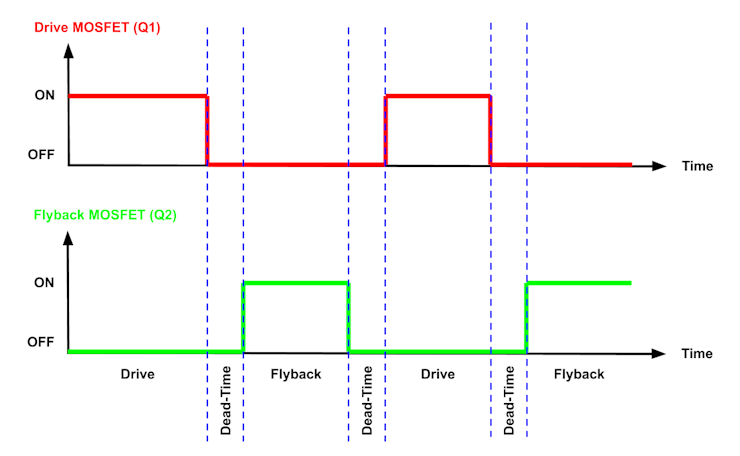 Dead time in synchronous rectification motor driver.