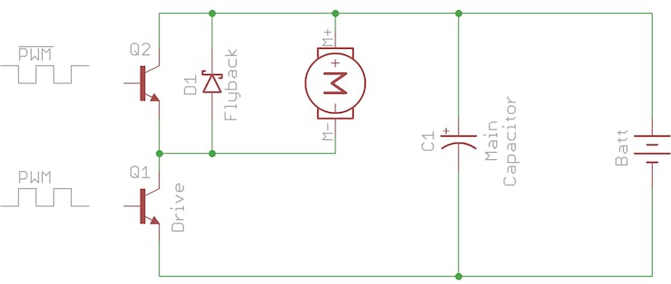 Another critical component in a motor driver is the main capacitor but it is often overlooked. It's especially important if you have a very long wires from the battery to the motor driver.