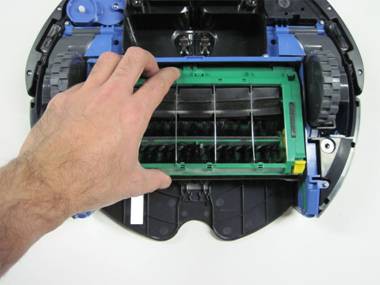 9.2.35 Drop the brush deck module into Roomba. Take care to make sure it is aligned properly. It may need to be moved from left to right, or jiggled slightly in place, to get it to settle into position.