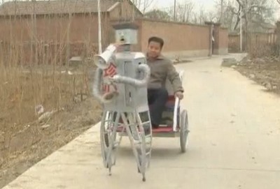 rickshaw robot which can transport him while speaking in a loudspeaker and playing music!