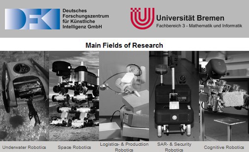 The projects are supervised by Prof. Dr. Frank Kirchner. DFKI Robotics develops mobile robots which can move around under water, on land, in the air or in space.
