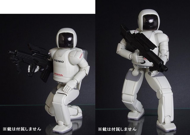 Asimo in several different positions including a very special one where the humanoid holds a firearm (OMG!) :