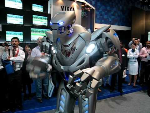 When one looks at this video for the first time, an immediate question always comes to mind: Is there a human being inside? Well, actually it is not clear, but is possible... Whoever truly knows the answer, please explain it in the comments. The giant Gitex robot demands respect with its size, its appearance, and its rapid movement. If you happen to see it entering your house, I think anyone would be scared, or think that it is something out of the Terminator or the Robocop movie. Although it sings, dances, and charms the ladies in the room, when it speaks in its normal voice, it frightens all children and babies :-) This huge robotic "thingy" manufactured by Panasonic was displayed at the Dubai World Trade in late 2009. http://www.youtube.com/watch?v=guFBCu2Hj24 http://www.youtube.com/watch?v=aA75GTBULhQ http://www.youtube.com/watch?v=poh5zSsd1rE
