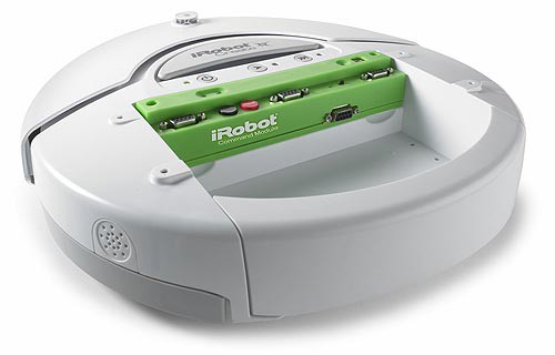 In a not-so-surprising move, iRobot Corp. has announced their new iRobot Create programmable robot. The platform allows you to use the robust Roomba-like chassis to create your own robotic creations. An optional Command Module plugs right into the cargo bay to allow you to program and controll the robot via the Create’s Open Interface. The command module is powered by an