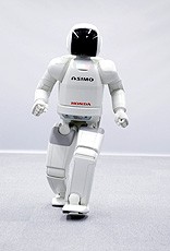 If you, like me, were too busy hob-knobbing with the elite to visit CES2006 this year, have no fear! Google Video has your hook-up for checking out Honda's presentation of Asimo. Close to ten minutes of cheesy dialog and music give you a pretty good idea of how amazing this robot is. He maintains his balance on a moving platform, does a 360 degree turn on a inclined surface, and does some amazing stair-stepping (with full length strides).