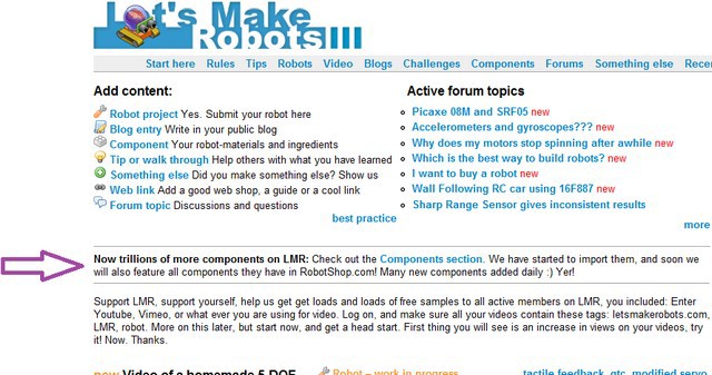 Components" page: you simply click on the product information which then links to the corresponding page in our catalog on the RobotShop site.