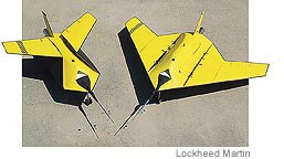 Another plane, dubbed the "Falcon", would fly at speeds up to Mach 9 high up in the atmosphere, and act as a bomber. The aircraft pictured has a moveable wing surface which allows it to go from a slow glide into a fast dive-bomb. Since the US Military has proposed increasing spending on unmanned aircraft to 1.9 billions dollars in 2007, there's lots of contracts to be had and money to be made.