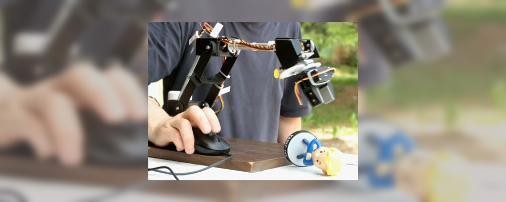 Oleg put together this pretty neat robotic arm that he can control using a standard USB mouse. He used a Lynxmotion robotic arm with a wrist upgrade, an Arduino as the brain, a USB Host shield in order to interface a regular computer mouse, and a custom made servo motor controller. This is a rather clever design and, as shown in the video below, all the degrees of freedom of the arm can be controlled by combining the motion of the mouse and the scroll wheel, and the clicking of the mouse buttons. http://www.youtube.com/watch?v=nz_tgDD8FNw Via Hack a Day (via Circuits@Home)