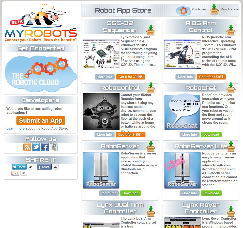 New Apps on the MyRobots App Store, the popular robotic kit manufacturer, just made all of their  robotic applications available via the MyRobots App Store. Their applications are mainly used for controlling servo motors using their popular