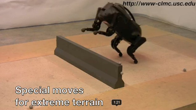Not only was this little robotic critter able to move alone over difficult terrain, but now it does so with greater confidence: It jumps, climbs stairs, and reacts to real-time obstacles.