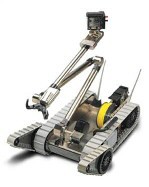 The video shows the 'bot in the EOD configuration ( the giant 7" arm ). You also get a look at the controller (2 6DOF joysticks to control it). I learned that the PackBot is submersible up to 6" and can communicate via RF or a fibre optic cable.