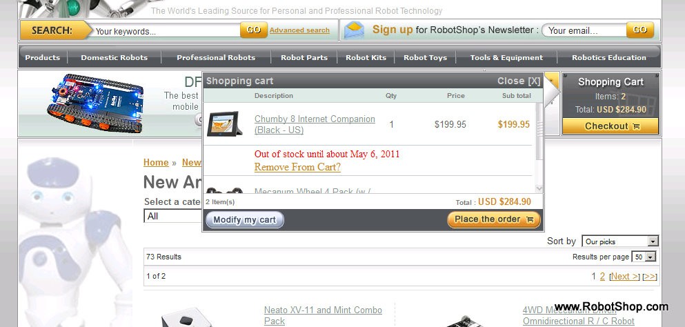 In order to allow customers know when to expect an item to be back in stock or to know how much time they will need to wait before their order is shipped, the RobotShop website now displays the estimated time of arrival (ETA).