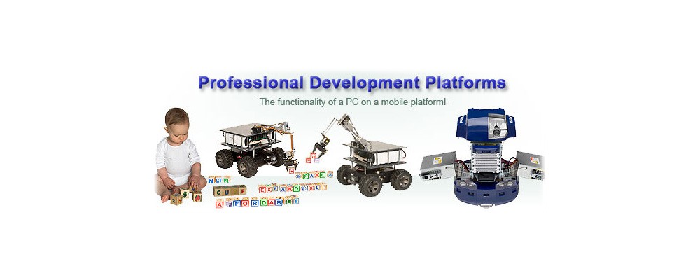 Professional development platforms are ideally suited to higher level education and research institutions. Increasingly, educational and research institutions are looking past the hardware to focus solely on robot intelligence. Professional platforms are essentially mobile computers, and have most of the components you would find in a standard PC (including video output, keyboard and mouse connections and more). These features allow you to focus entirely on programming the robot without the constraints of a low-cost microcontroller.