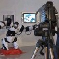 In a tribute to Joseph Weisenbaum, Andrianne Wortzel has wired up a Robosapien to a chatbot and a webcam. The Robosapien sits in the studio and provides psychoanalysis over the Web. The project is