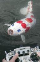 Now you can put large robotic koi in your fish pond instead of the real things. The folks at Ryomei Engineering have created a robotic carp that can swim like the real thing, along with going backwards, and turning in place. Here's some video of the fish in action. It has a camera in its head for great fishy-video.