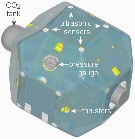 SPHERES, is run by David Miller and is sponsored by DARPA. The spheres are powered by compressed CO2 thrusters and are about the size of a volleyball.