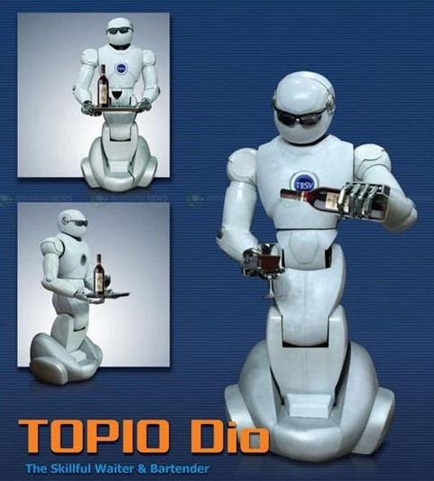 TOPIO Dio is 1.25 m tall and weighs 45 kg. The robot possesses a total of 28 degrees of freedom.