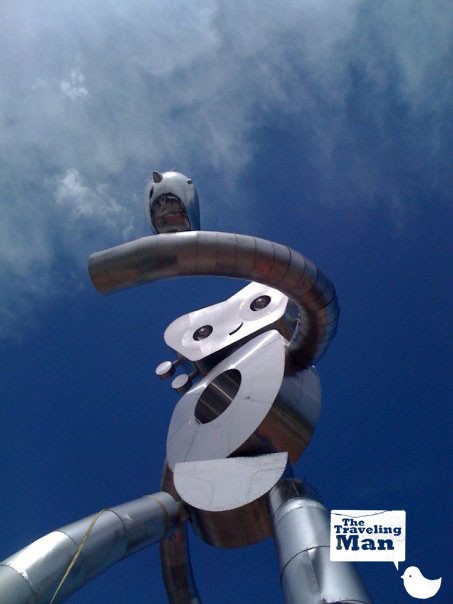 "The Traveling Man" has been created by sculptors Brandon Oldernberg and Brad Oldham with a design and creation agency.