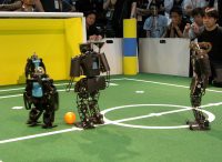 RoboCup 2007 took place from July 1st to July 8th in Atlanta, GA. In the final match the titleholder Team Osaka (Japan) met team NimbRo from Freiburg University (Germany). The same two teams had met in the two previous years. The 2007 final was one of the best humanoid soccer games ever, if not the best. Team Osaka played with one goalie and one field player while NimbRo used two field players. The Osaka robots were very quick to approach the ball and to kick it across the field. The NimbRo robots excelled in one-on-one fights for the ball and also demonstrated nice team play. The exciting game was open until the end. The final score was 8:6 for NimbRo.