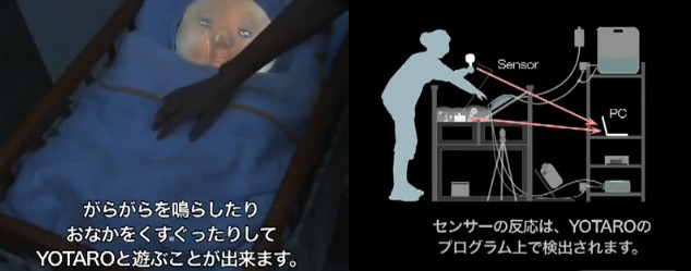 The baby's face is made of translucent silicone and is equipped with chubby cheeks and blue eyes. The face changes colour and lights up according to its mood.