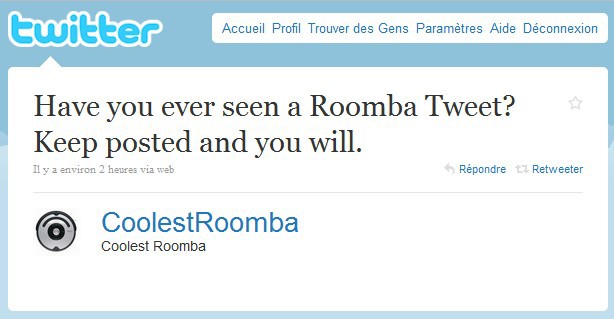 this CoolestRoomba Twitter account announces that a Roomba forgotten in the darkness of an old garage has finally found a home.
