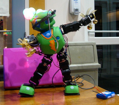This is a small humanoid MANOI AT-01 at Yankadi club (Western African Drum) at Clarkson University (USA).