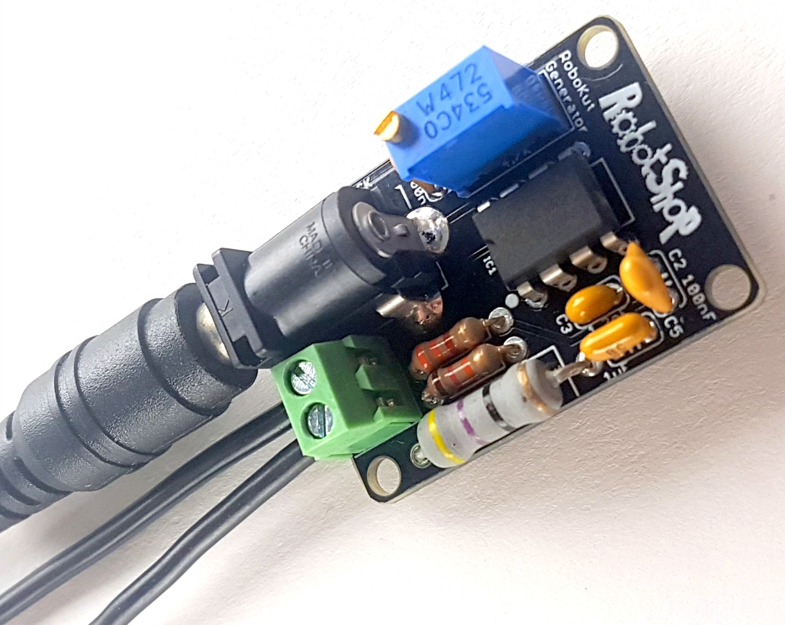 Additional parts added to the schematic includes A barrel jack (J1) for easy connection to a wall adapter (12V) and a screw terminal (12) to conveniently connect to the perimeter wire. Perimeter Wire: Note that the longer the perimeter wire, the more the signal degrades. We tested the setup with roughly 100' of 22 gauge multi-strand wire (pegged into the ground as opposed to buried). Power Supply: A 12V wall adapter is incredibly common, and any current rating above 500mA should work well. You can also choose a 12V lead acid or 11.1V LiPo to keep it within the case, but be sure to weatherproof it and turn it off when not in use. Here some parts we offer that you might need when building the generator circuit :
