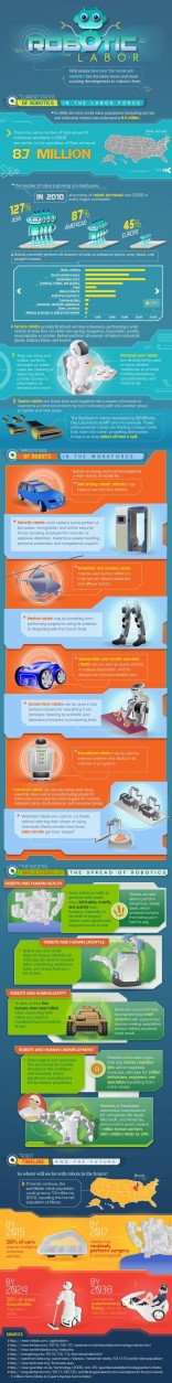 Robots are becoming increasingly capable, intelligent and flexible. As a result, they can perform an increasing amount of tasks and are also taking more and more jobs all over the world. The infographic below created by Mezzmer
