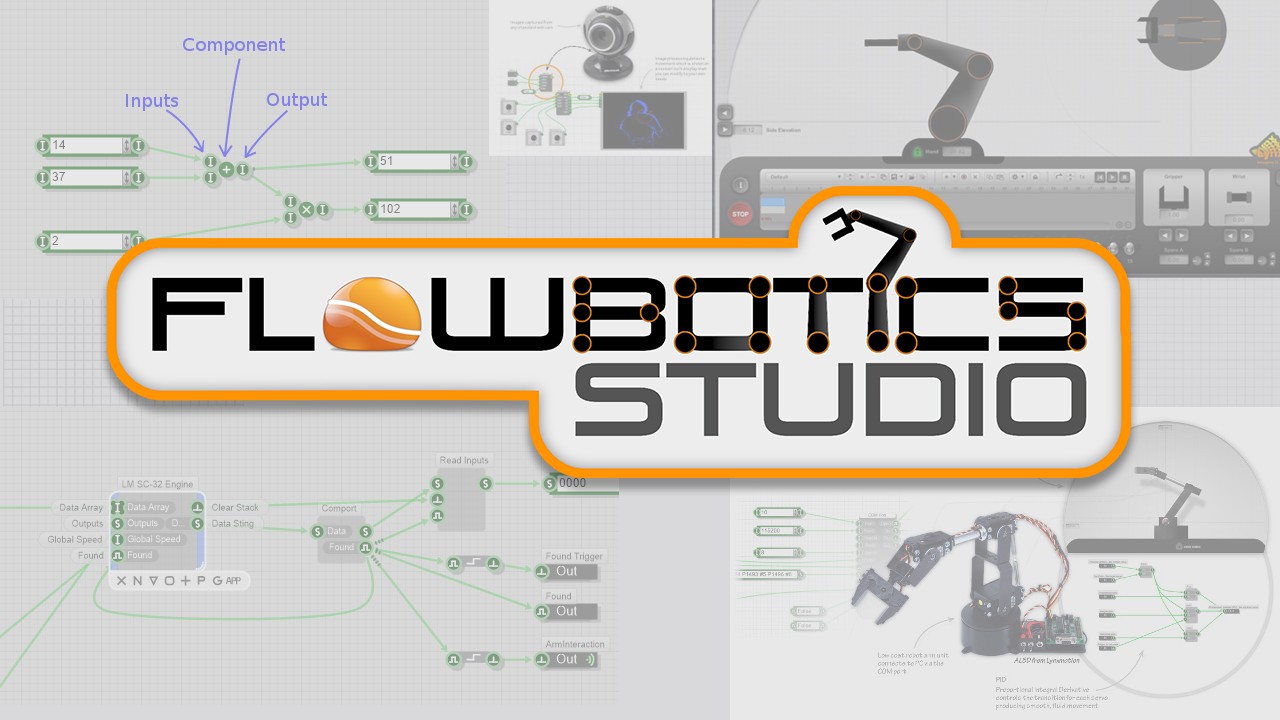 FlowBotics Studio is a Windows-based robotics software development platform and the perfect tool to create robot apps and is now becoming free for all! It includes everything you need to make your robots smarter and boasts the powerful FlowBotics graphical programming language. A complete user guide is available (English) and various demo robotics projects help you get started. It can be used to control just about any robotics platform, data acquisition board, motor controller, servo board, sound card, or webcam.