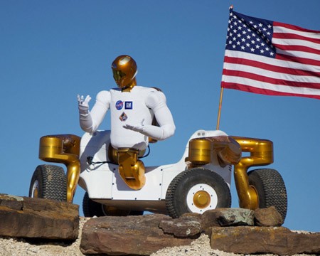You might remember Robonaut 2 from earlier this year. It was the leg-less humanoid robot accompanying the ISS crew.  The golden hexapod robot you now see beneath it is the Spidernaut, a NASA project designed for constructing and maintaining large orbiting structures in space. The combination of both these amazing robots, although totally awesome and resulting in one of the most scary looking robots of 2011 is... not real (yet). That is right, a freaky giant spider robot with a humanoid torso and a Cylon head does not exist yet and the picture above is showing a dramatic angle of two separate robots : Spidernaut and Centaur 2