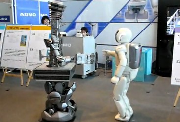 Asimo by Honda and Tsutenkaku have formally met in a memorable face to face meeting.