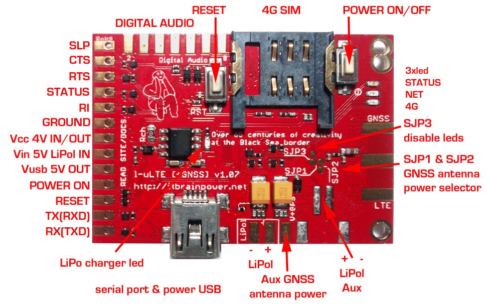 l-LTE v 1.07 4G/LTE CAT 4 shield, the smallest 4G/LTE shields available today, have one high-performance GNSS [GPS+GLONASS] engine embedded. By default, the GNSS antenna circuitry is configured for