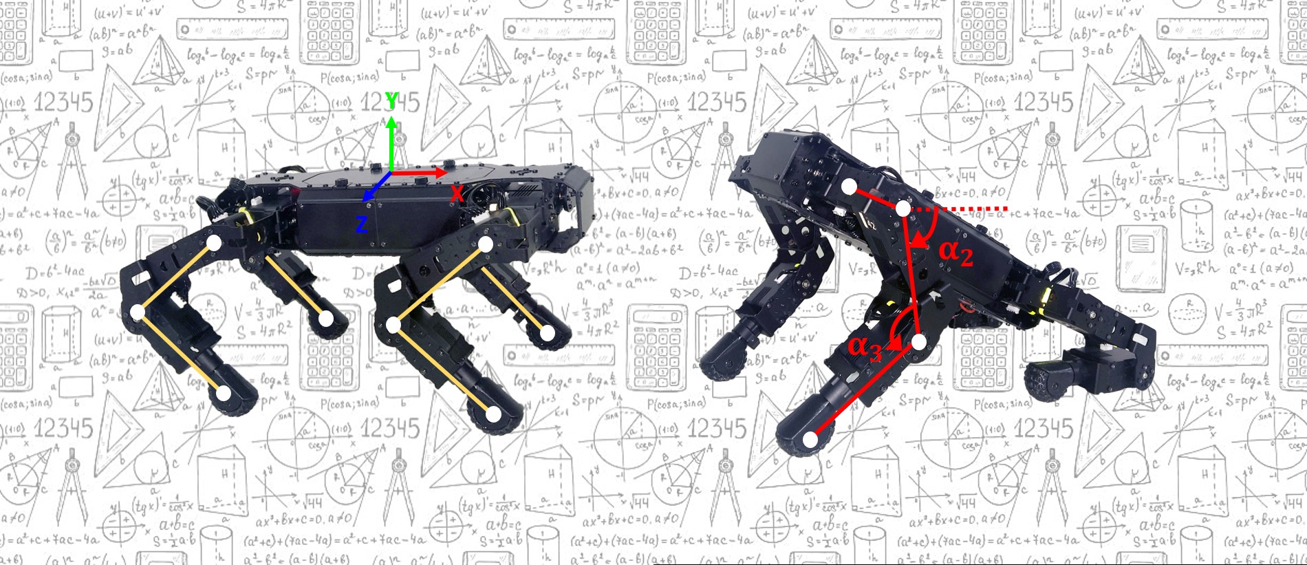 Once all the offsets have been taken into account we have the final angles that need to be sent to the servos to move the feet to a specific location. However, this alone will not allow mechDOG to walk; for this, we will need to synchronize the motion between the legs and include some additional factors.