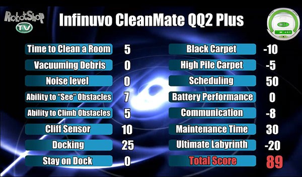 No matter, now on to the results! Let's see how it did:Looking at the robot's scorecard and the scoring criteria, you may have noticed the large discrepancy between the score of the QQ-2 Plus and the other three challengers. It is good to keep in mind that the QQ-2 Plus is a much simpler robot than the others, this made particularly evident by its sale price. At less than half the price of the next challenger, the QQ-2 Plus is a decent robot for what it costs.