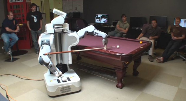 The PR2 robot by Willow Garage, which has been covered in several articles, has decided to start playing pool.