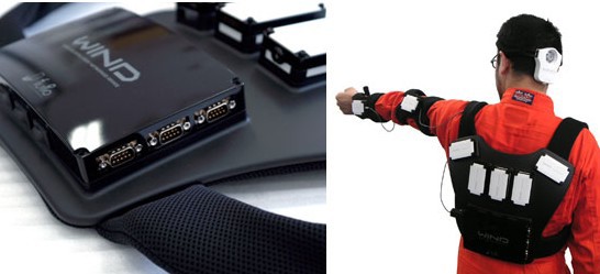 The vest is equipped with sensors that detect the movements of anyone wearing it and wirelessly sends instructions to the robot, which in turn receives and executes them.