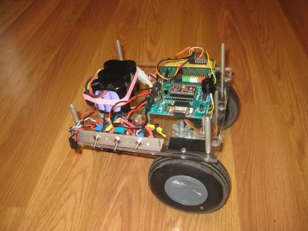 I am back. My older work was posted under Prettybird, but that account stopped working. This one of my newer designs. It uses a back steering wheel instead of a coaster and can work well on smooth or rough surfaces. It is also designed to carry some weight. I have loaded it up to 1.5 kilos so far (about 3 lbs). So far I have used the Parallax Basic Stamp (BS2PE) and reciently added a Parallax Propeller board. I am finally in the process of learning the prop. I like the back wheel steering because it dosen't get stuck on sidewalk cracks and such. It uses 2 x 3" model airplane tube tires and has alot of traction and room for expansion.. Work still in progress.