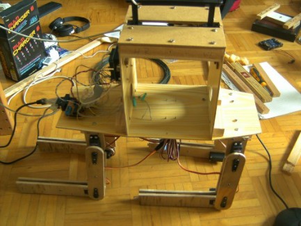 My robot is based on an AT-AT from STAR WARS (https://www.youtube.com/watch?v=7FSggapwUC4 at 4:28) but it isn't very much looking like one (now).