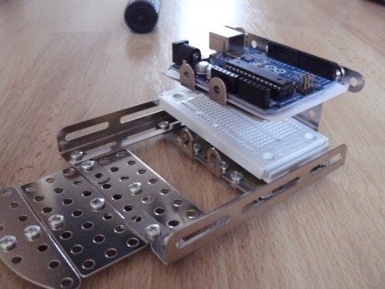 This is my Arduino Robot so far. I'm still waiting on the Gearboxes and Motordriver IC. I build a chassis of Meccano. My robot will have a Security Mode with a PIR Motion Sensor. It will also have a LDR and some LEDs onboard. If the LDR detects that it is dark the LEDs will automatically turn on. I'm also planning to add my DFrobot LCD keypadshield later on. My robot will have a classic toggle switch as on/off switch. See pictures below.