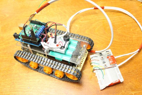 Electrical: The arduino, motor shield, battery and motors all went together fairly easily. I soldered leads to make wiring easier and put heat shrink over more vital parts of the wiring. Nothing fancy. Added a piezo speaker, power switch and LED to the breadboard to indicate that arduino had gotten thru setup and to control power and show if power was on or off. I'm comfortable with basic electronics and probably understand it the best of the three!