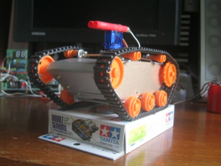 Before going on developing the Home Explorer, I have to make a battle tank with shooting capability for my son...because I promised him several months ago. The battle tanks are remote controlled and made to shoot each other by laser or infrared. It has these features: