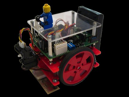It's brain is ATmega16 AVR connectable to the PC via Bluetooth - this allows to have the board programmed wirelessly via AVR109-based bootloade or to run some nice rbot monitoring and controling program on the PC or a mobile phone.